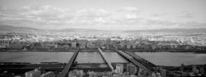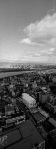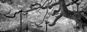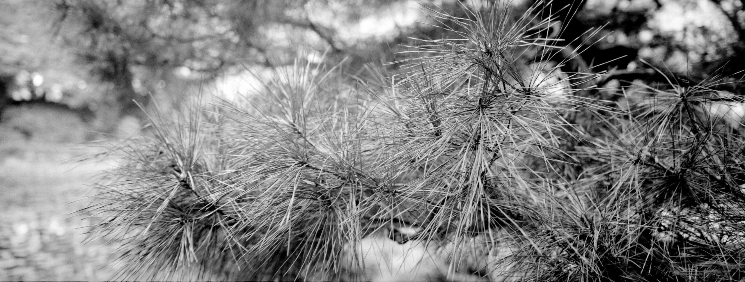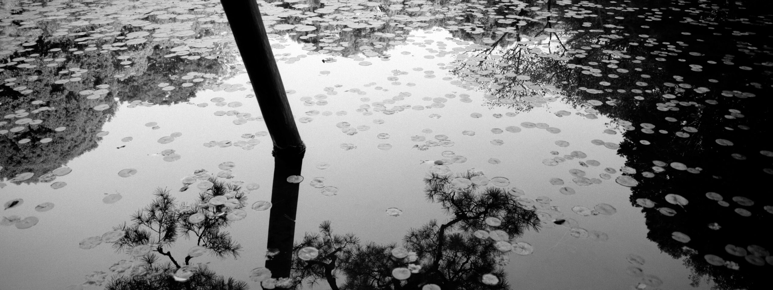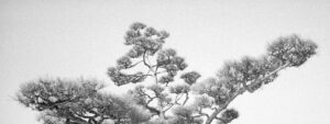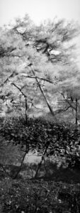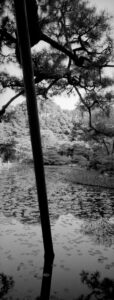 Martin Lutz verschiebt den Fokus bewusst vom bekannten Wahrzeichen weg. In einem Panoramaformat richtet er den Blick auf die Landschaft des Parks selbst. Die entstandenen Fotografien entziehen sich der ikonografischen Erwartung und eröffnen eine ruhigere, kontemplative Perspektive. Den Bildern haftet eine Qualität an, die weniger das Spektakuläre betont als vielmehr eine verdichtete, atmosphärische Vorstellung von japanischer Raumwahrnehmung.