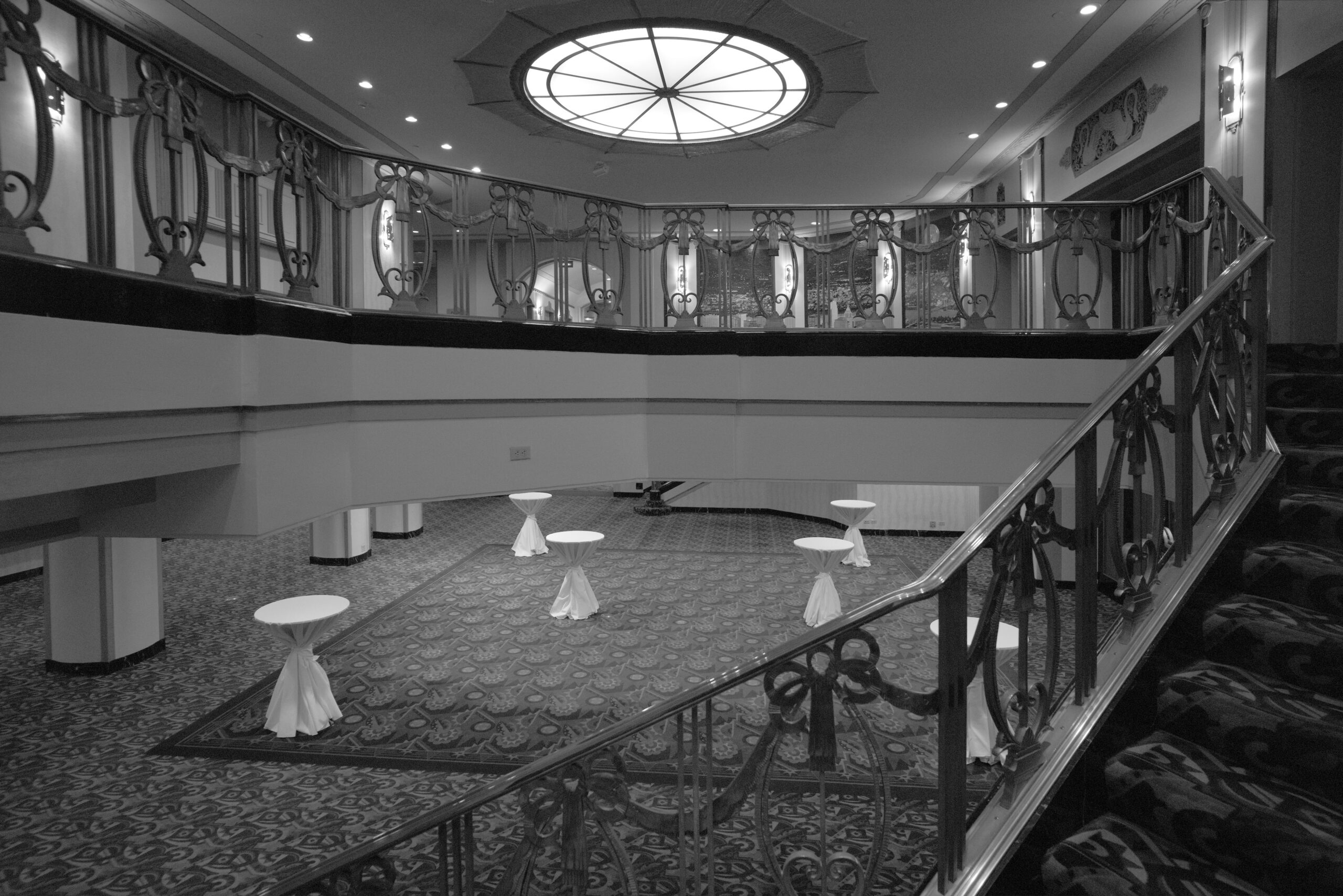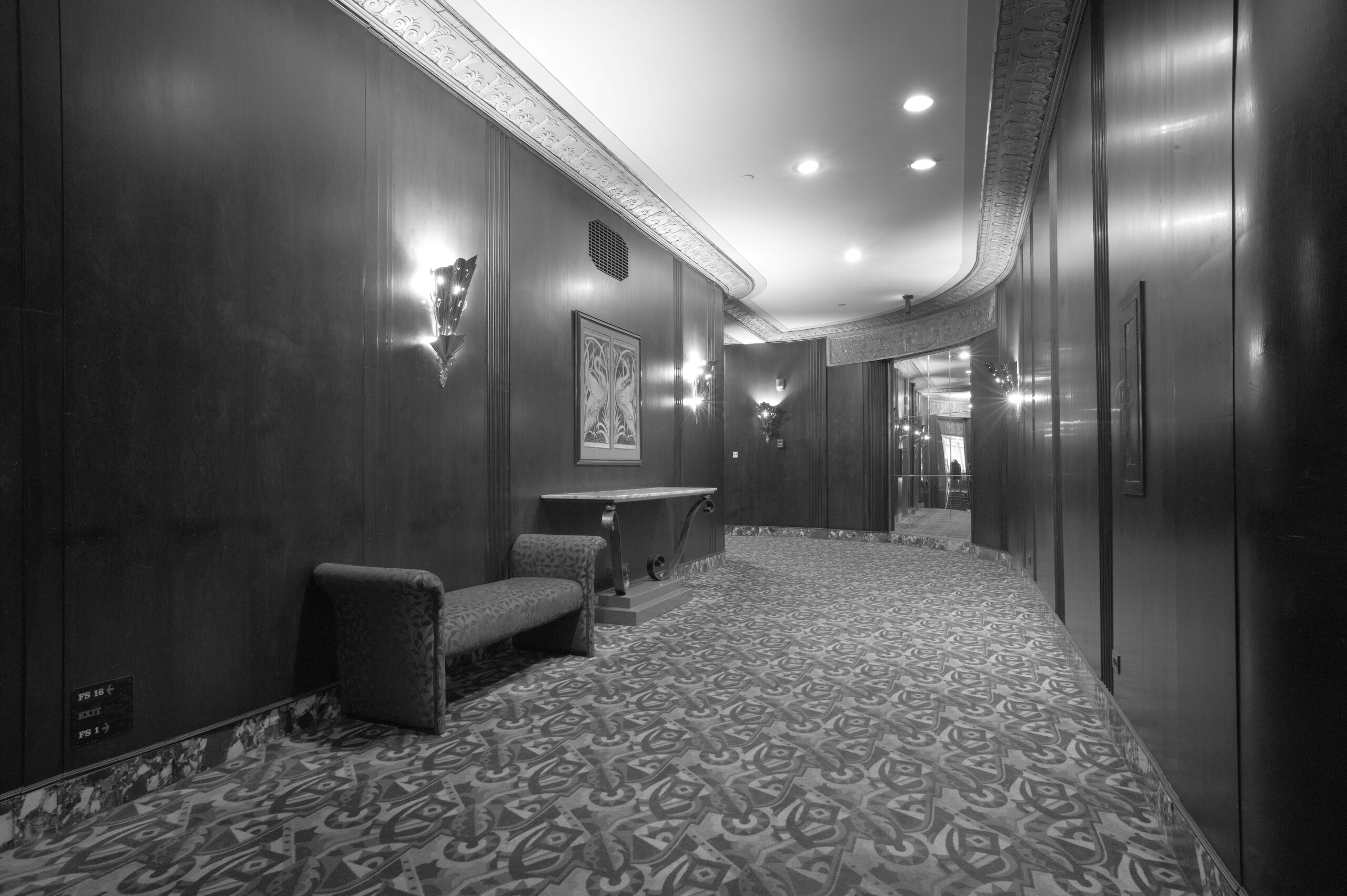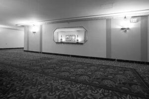 Die Serie Liminal Palace Hilton richtet den Blick auf eine nicht intendierte Erscheinungsform des Luxushotels: leere Gänge, verlassene Empfangshallen, entleerte Übergangszonen. Die Räume wirken entrückt und entwickeln eine beinahe surreale Präsenz.