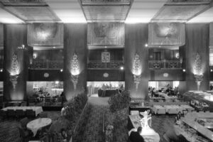 Im Zentrum steht das Gebäude selbst – das Hilton Cincinnati Netherland Plaza, ein markantes Beispiel französisch geprägten Art déco und Ausdruck eines repräsentativen, zutiefst amerikanischen Selbstverständnisses. Als Luxushotel ist es auf Präsenz, Bewegung und soziale Sichtbarkeit ausgelegt.